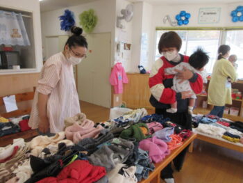 なかなか着ないうちにサイズアウトしてしまった……などの理由で提供していただいりしたものもあり、キレイな状態のお洋服や小物類に参加された方は喜んでいました。