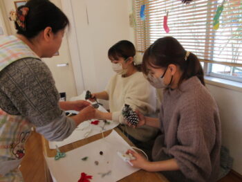 R7.12月4日・5日に公園の大きな松ぼっくりを用いてクリスマスにもぴったりなオーナメントを作りました。