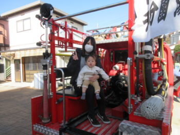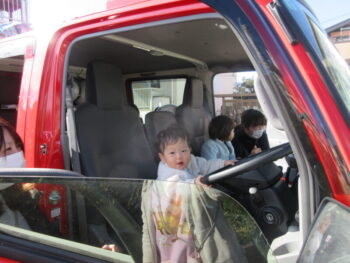 働く車が好きなお友達も多く普段は手に触れたり、乗ったり出来ない本物の消防車が目の前にあるというだけで大興奮!!