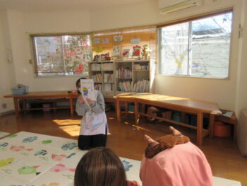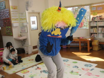 和泉こども館でも豆まきをしました。今年はおにが少なかったですがそれでも見慣れぬ姿の青おににびっくりして泣き出すお子さんも!みんなで新聞のおまめをまきました。